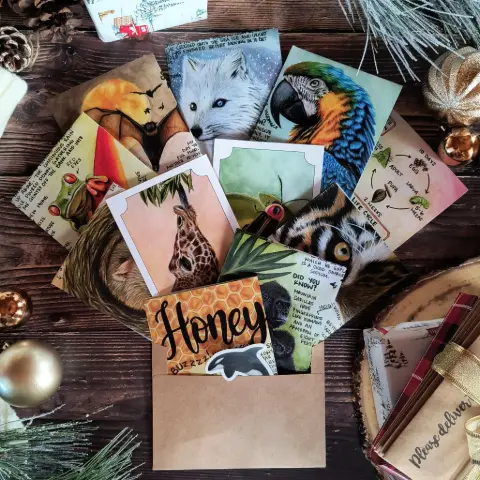 Receive a letter each month from a new animal and learn all about their life in the wild. All artwork is created by a real artist using watercolors and colored pencils on paper. A portion of profits are donated to wildlife conservations.